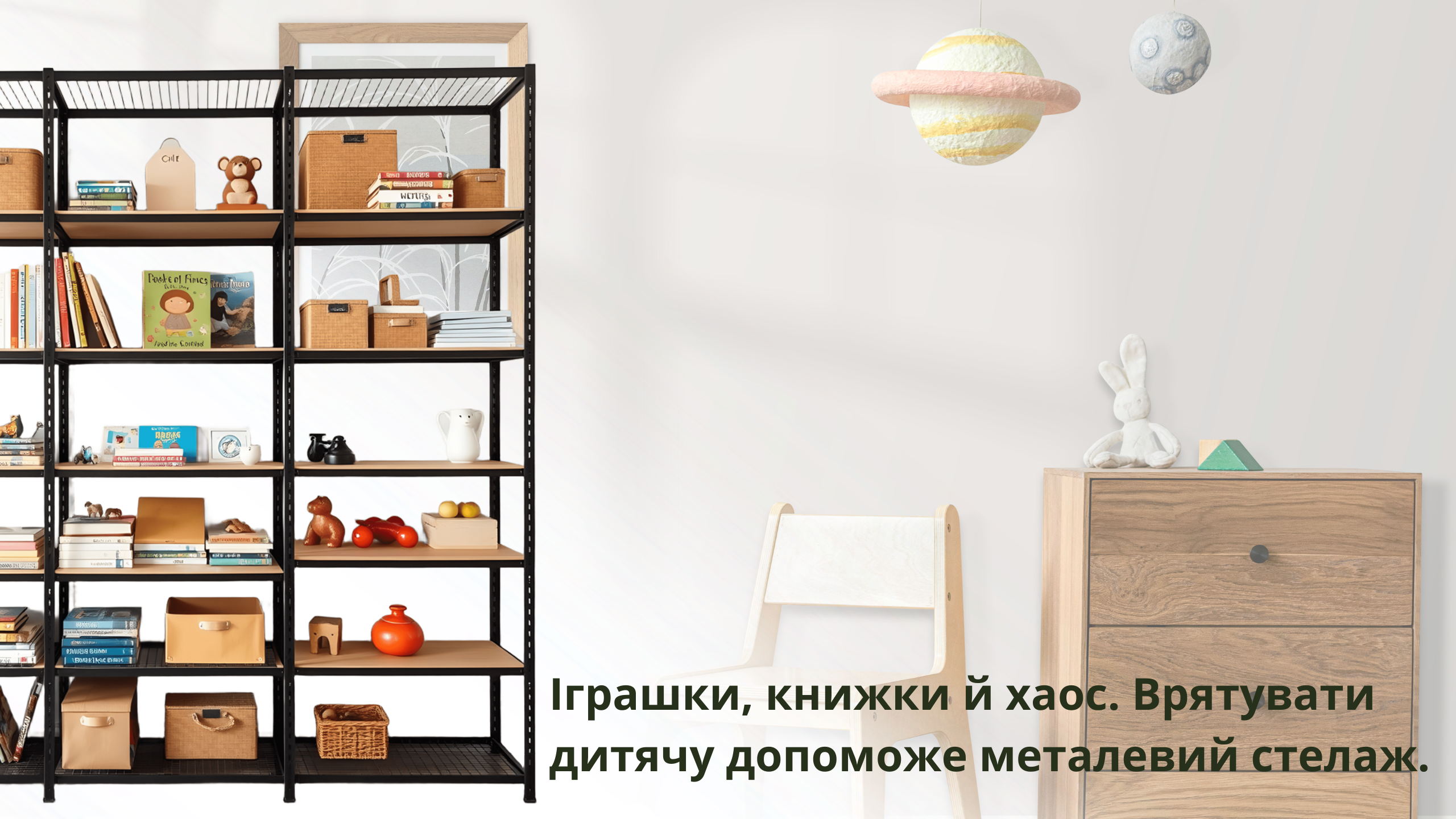 Дорослі очікують, що речі будуть лежати на своїх місцях. Але для дитини поняття «порядок» гнучке: якщо улюблений ведмедик сидить поруч із книжкою на підлозі, це вже впорядковано. Завдання батьків — не нав'язати свої стандарти, а створити зручну систему, де малюк сам зможе підтримувати лад. Саме тут на допомогу приходять стелажі з металевим каркасом - міцні, надійні та адаптивні до потреб зростаючої дитини.