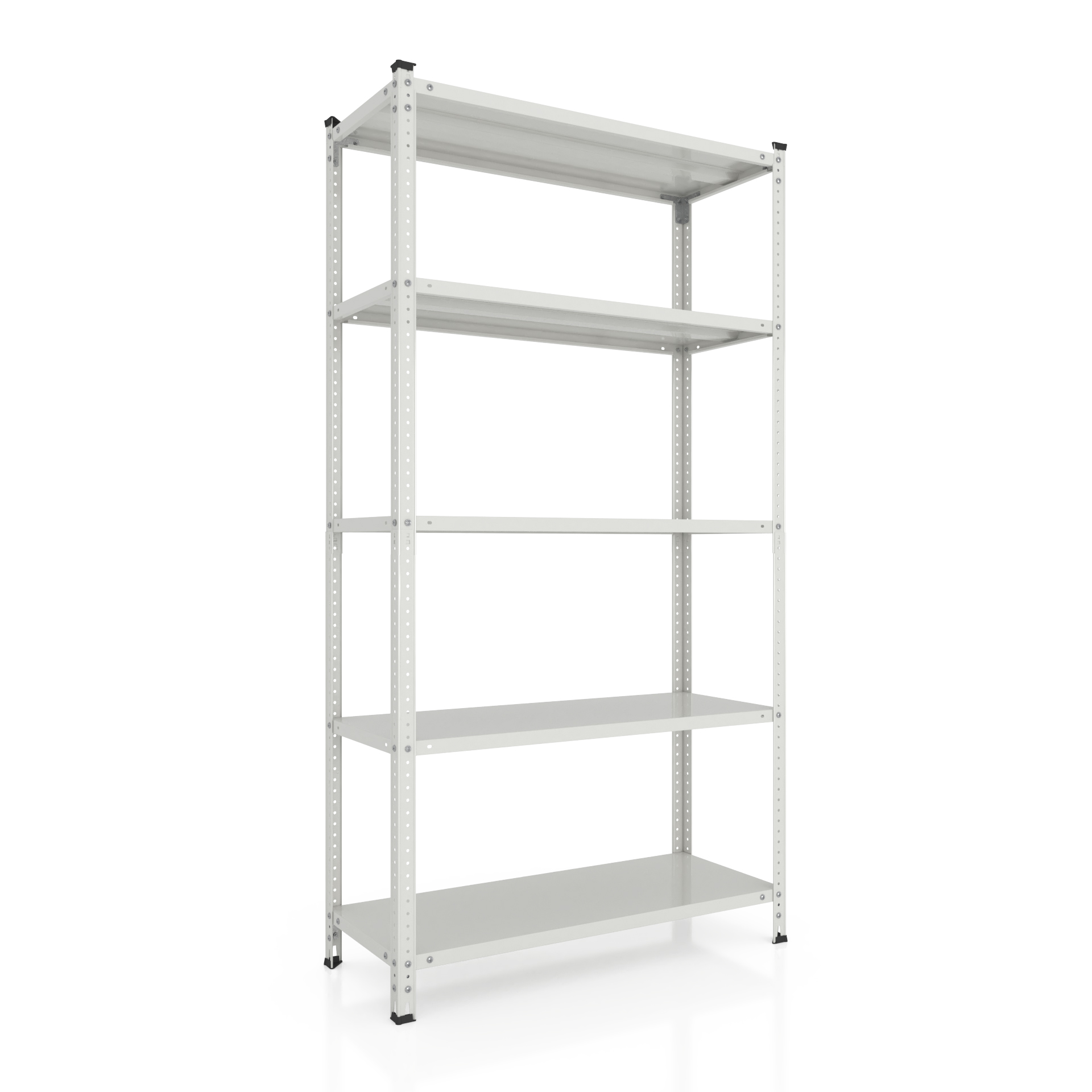 Металевий стелаж 180×100×30 см, 5 полиць, білий, Кронос