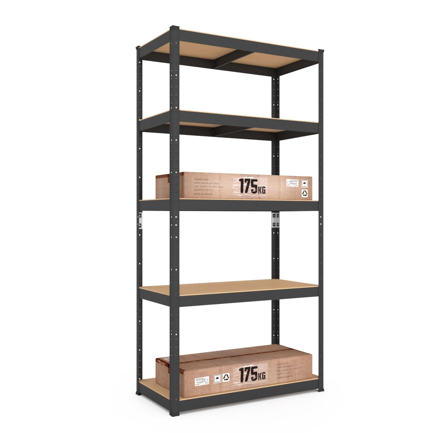 Металевий стелаж 180×100×60 см, 5 полиць, МДФ, чорний, Бюджет