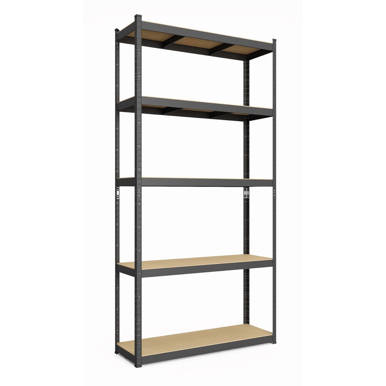 Металевий стелаж 180×110×60 см, 5 полиць, ДСП, чорний, Бюджет