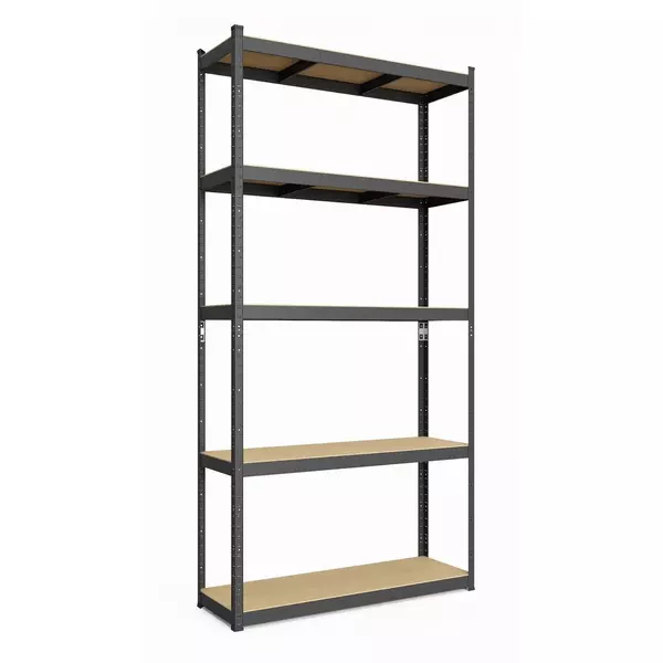 Металевий стелаж 180×120×40 см, 5 полиць, ДСП, чорний, Бюджет
