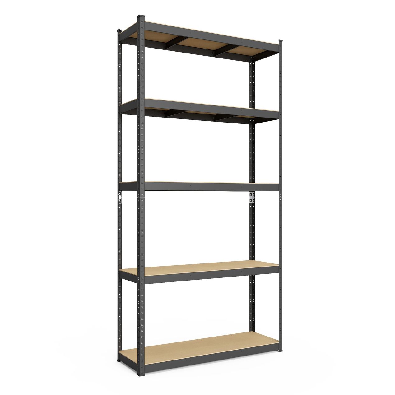 Металевий стелаж 180×120×60 см, 5 полиць, МДФ, чорний, Бюджет