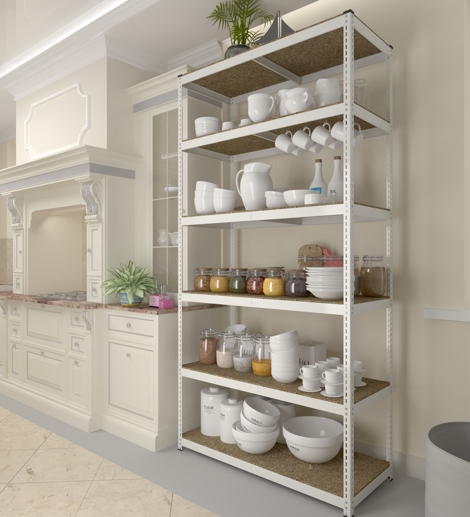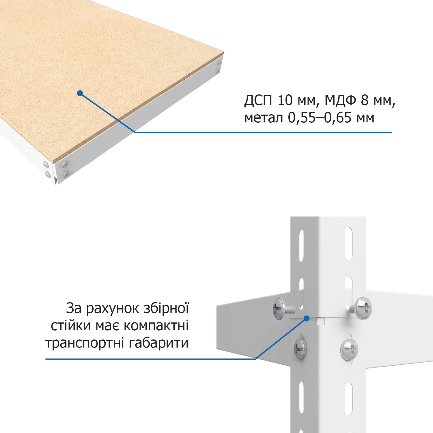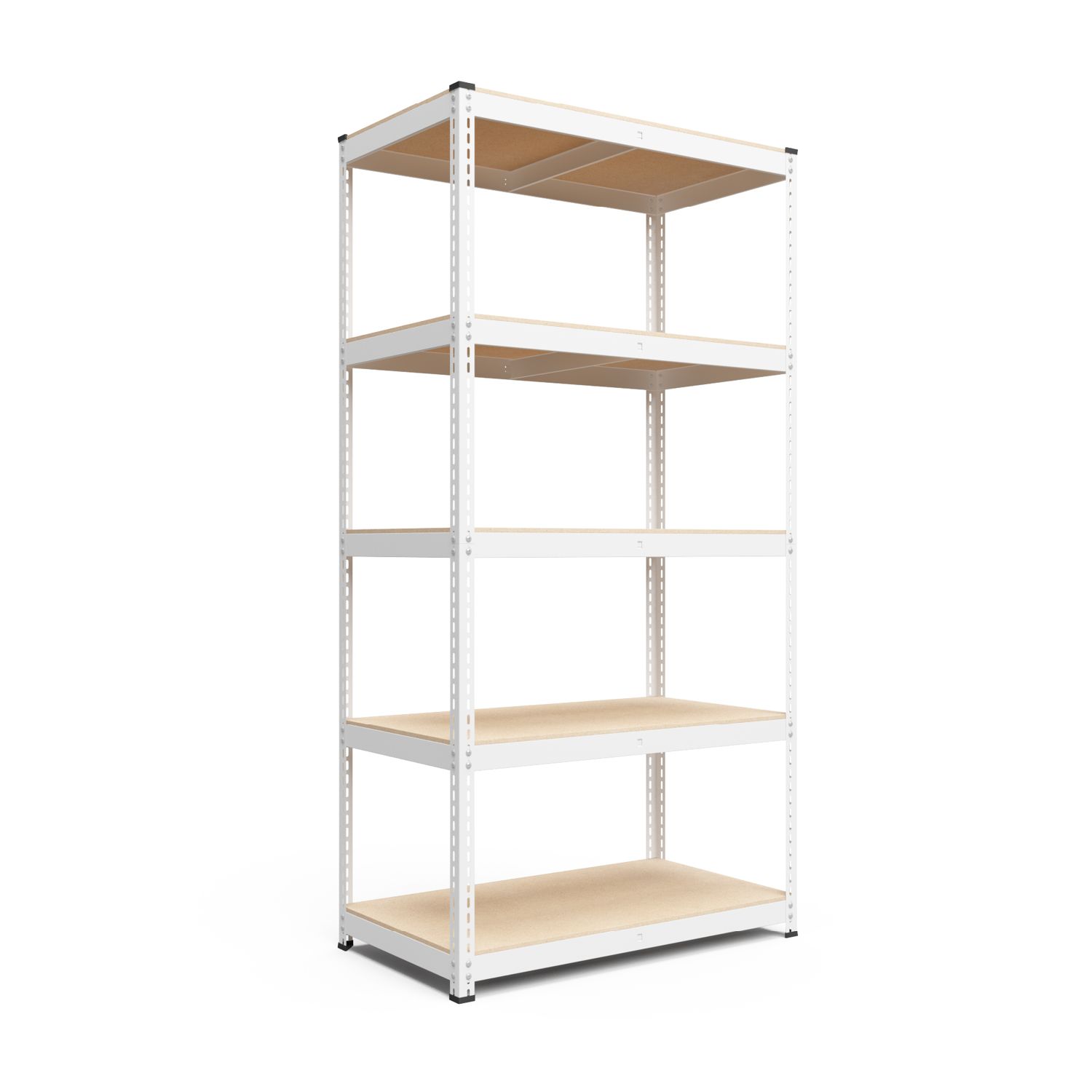 Металевий стелаж 180×90×50 см, 5 полиць, ДСП, білий, Еталон