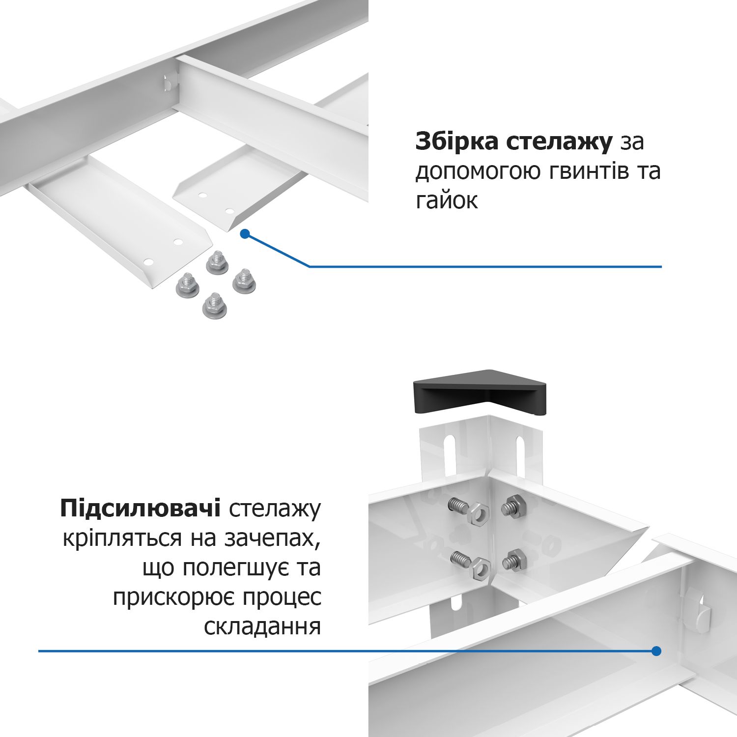 • Полиці монтуються на болтах, для додаткової стабільності конструкції.
