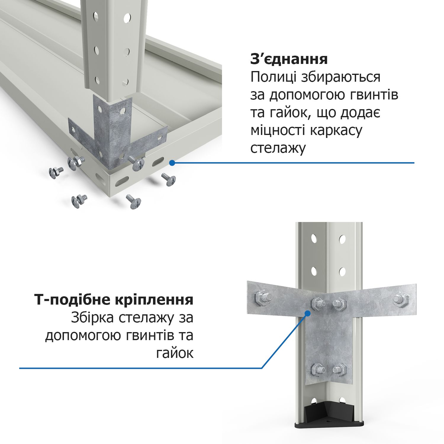 • Стелаж монтується на болтах для додаткової стійкості конструкції.