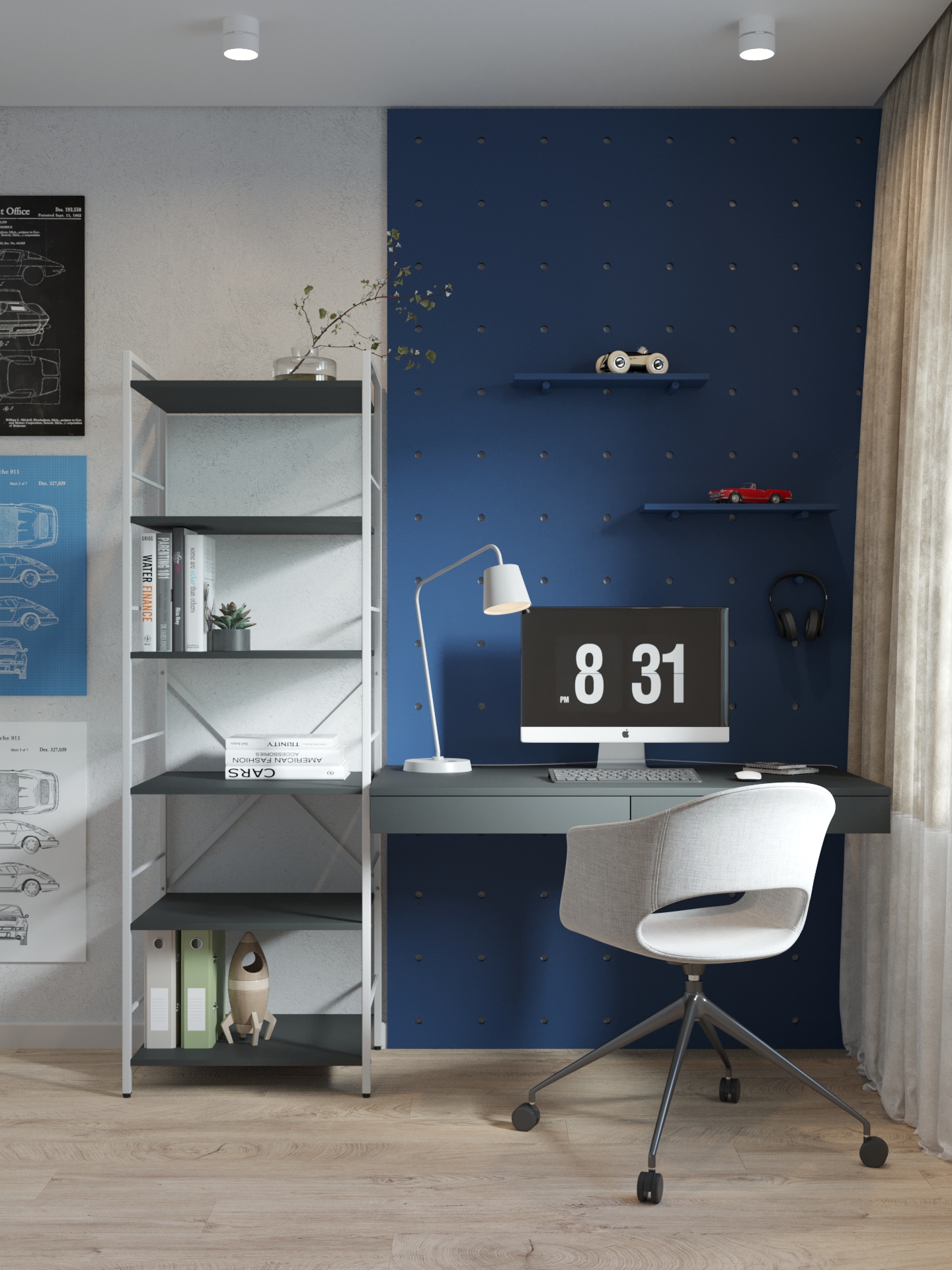 Модель доступна у двох варіантах каркаса: Білий або Антрацит. Полиці можна вибрати у відтінках Антрацит, Білий Сніг та Дуб Артизан.