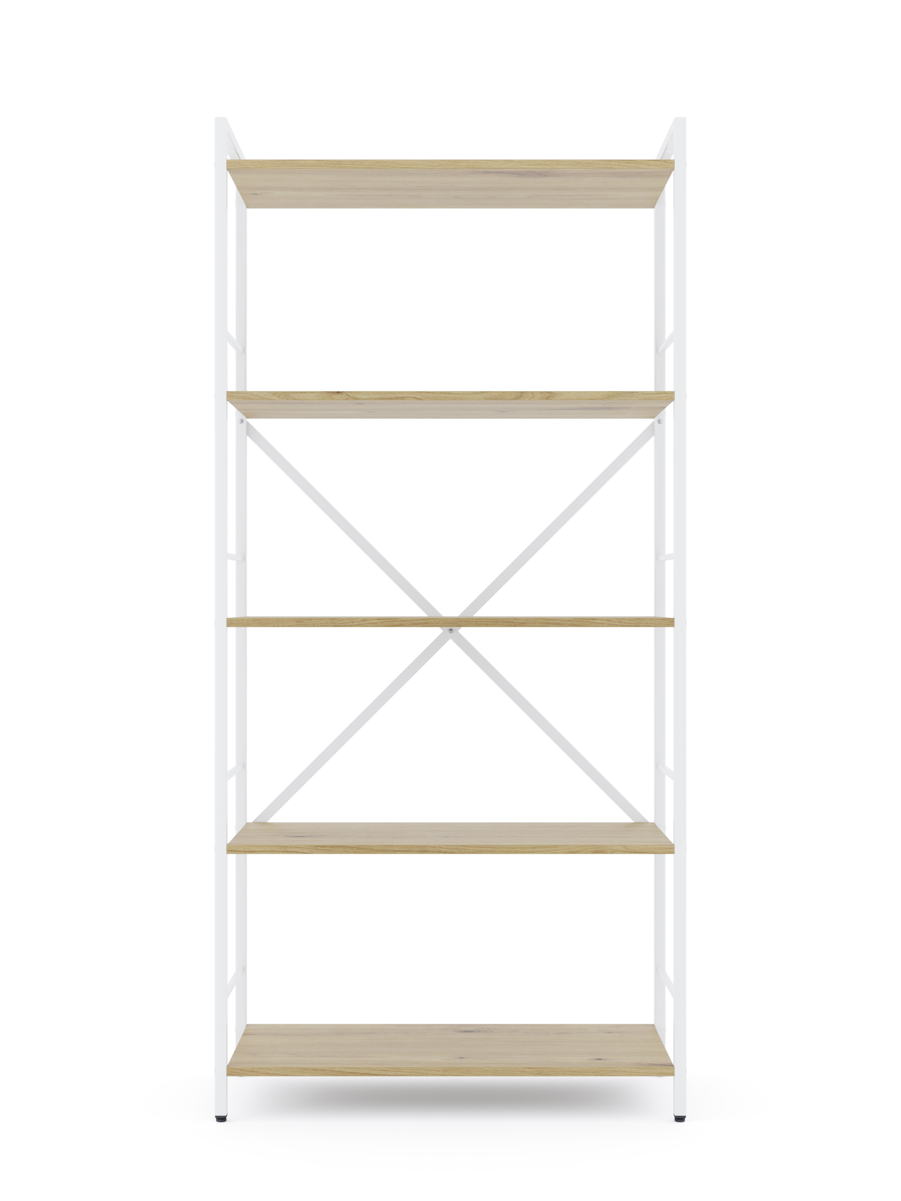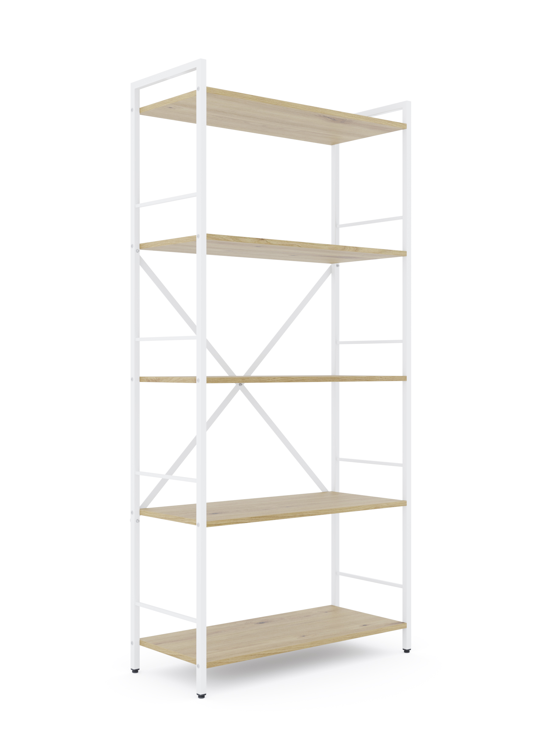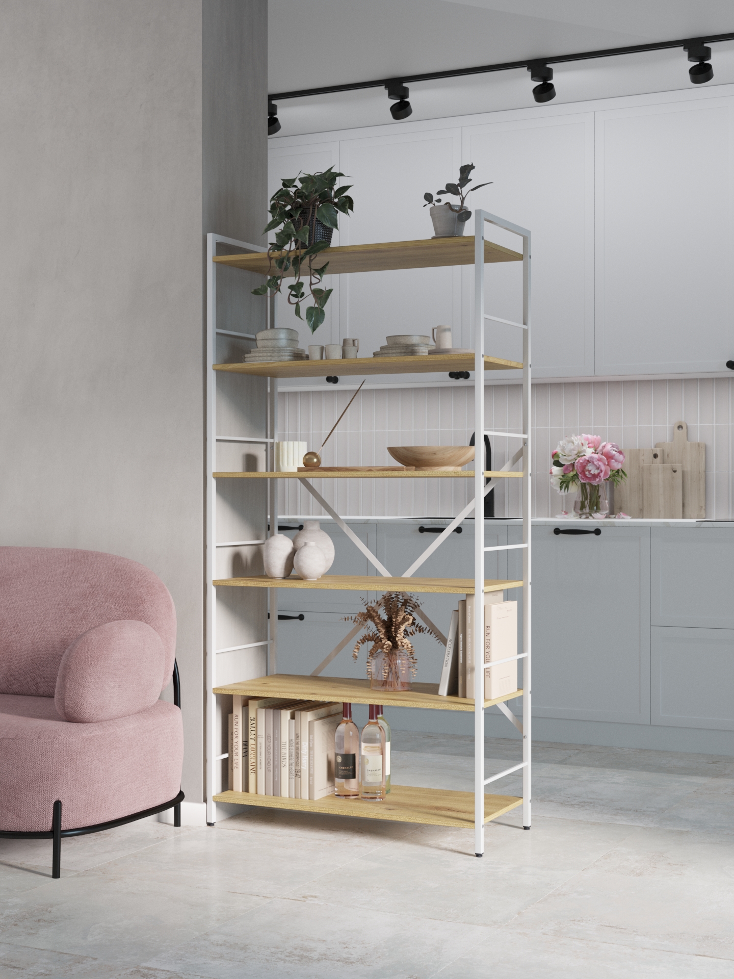 Металевий стелаж 170×80×35 білий-дуб артизан, 5 полиць ЛДСП, Лофт