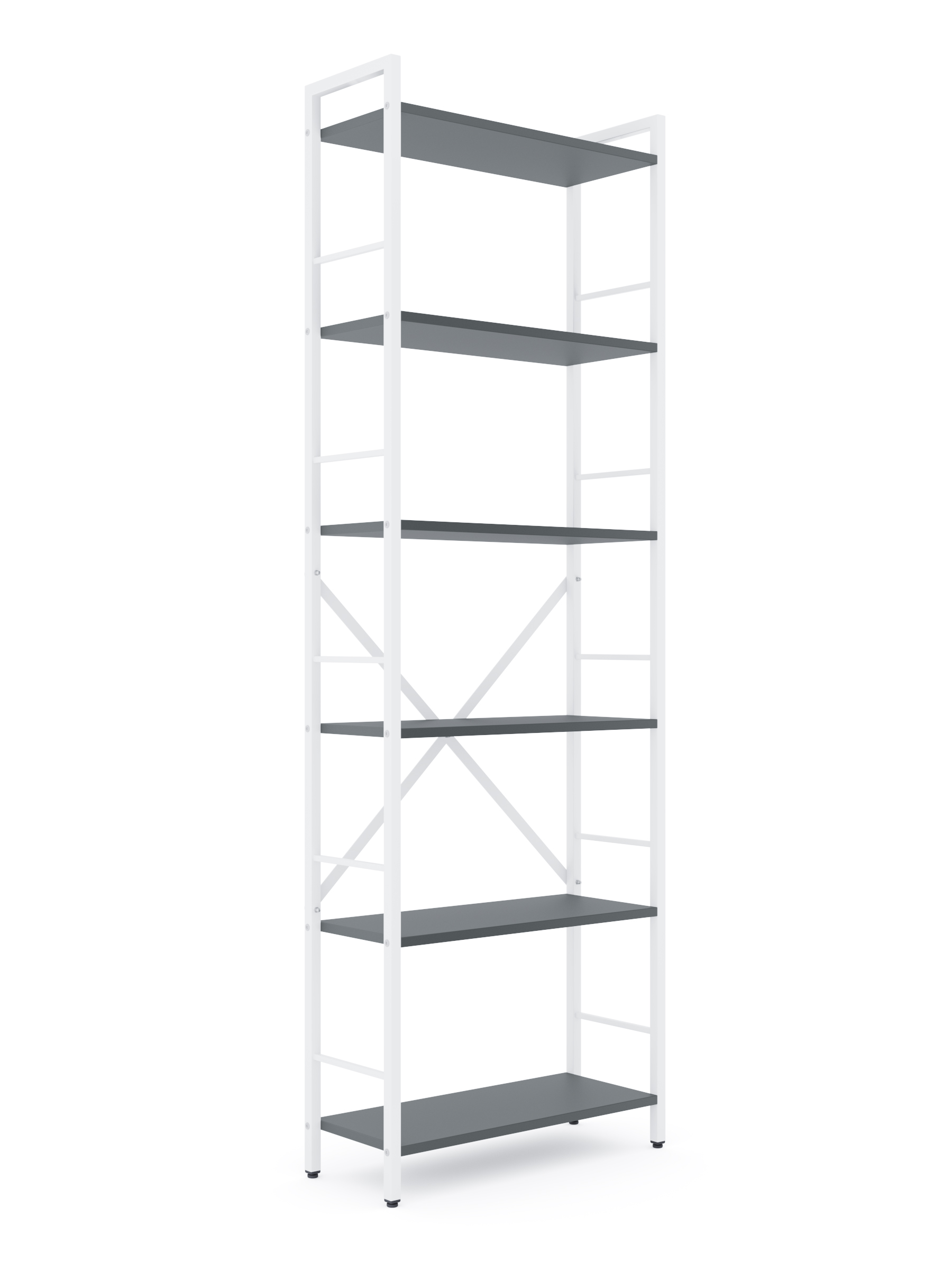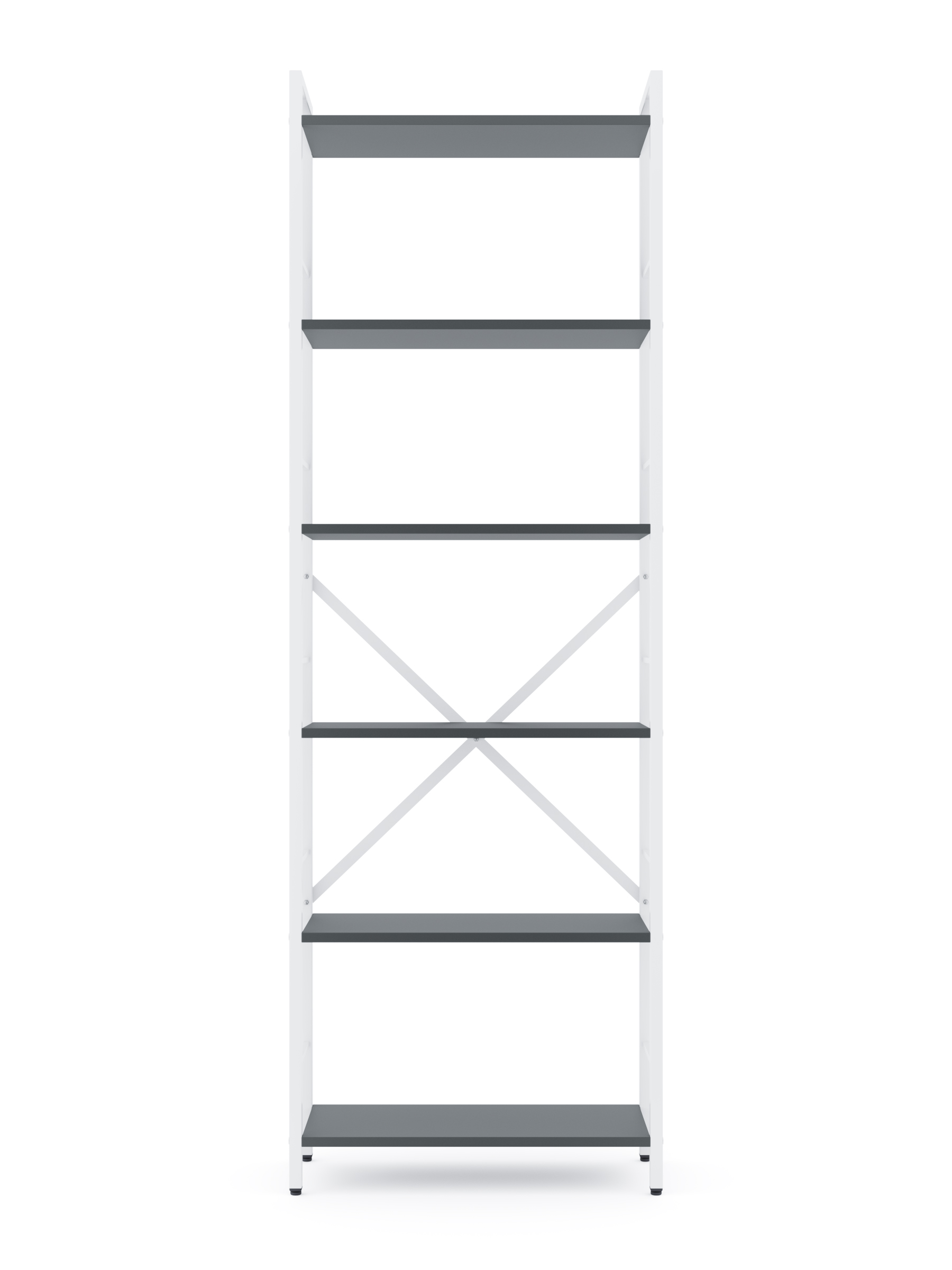 Модель доступна у двох варіантах каркаса: Білий або Антрацит. Полиці можна вибрати у відтінках Антрацит, Білий Сніг та Дуб Артизан.