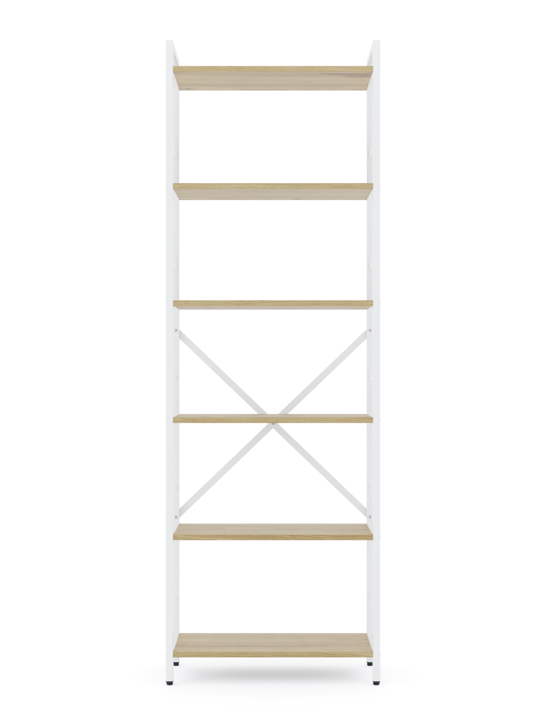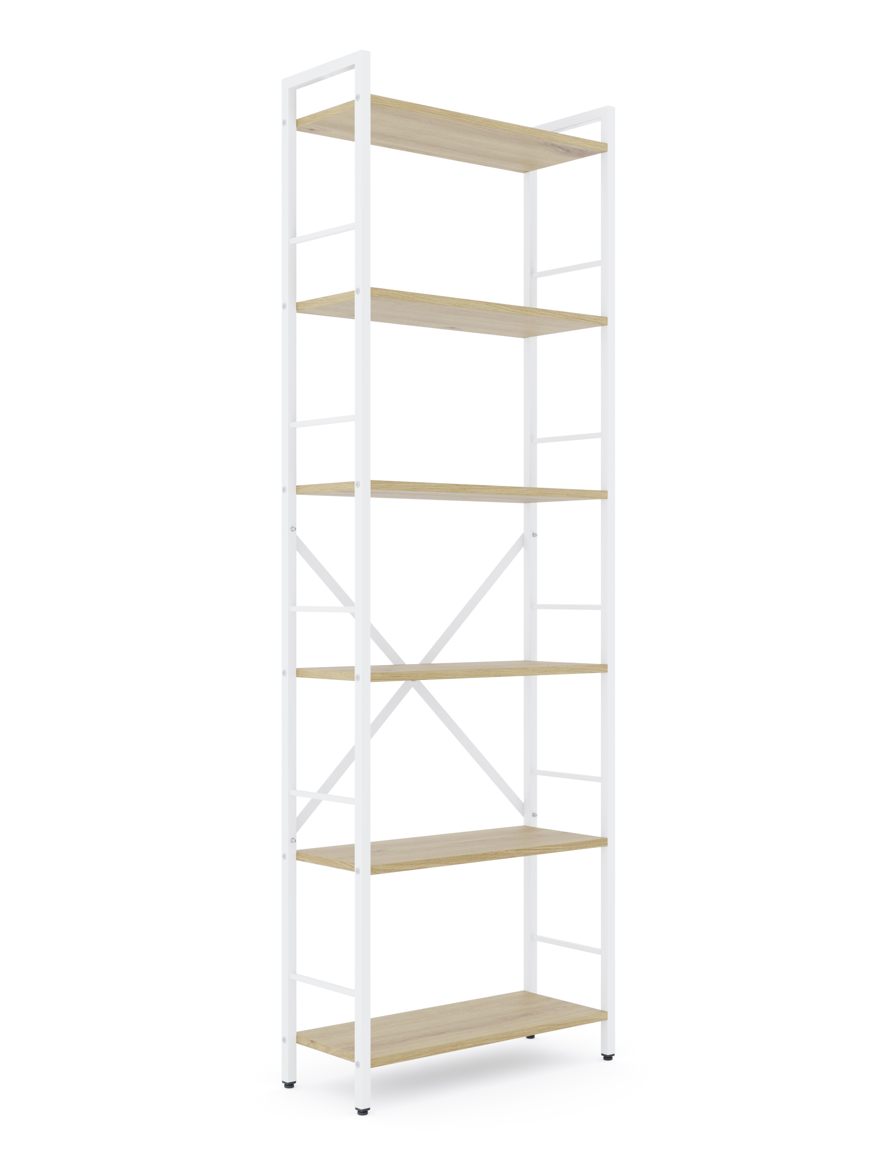 Металевий стелаж 180×60×24 білий-дуб артизан, 6 полиць ЛДСП, Лофт
