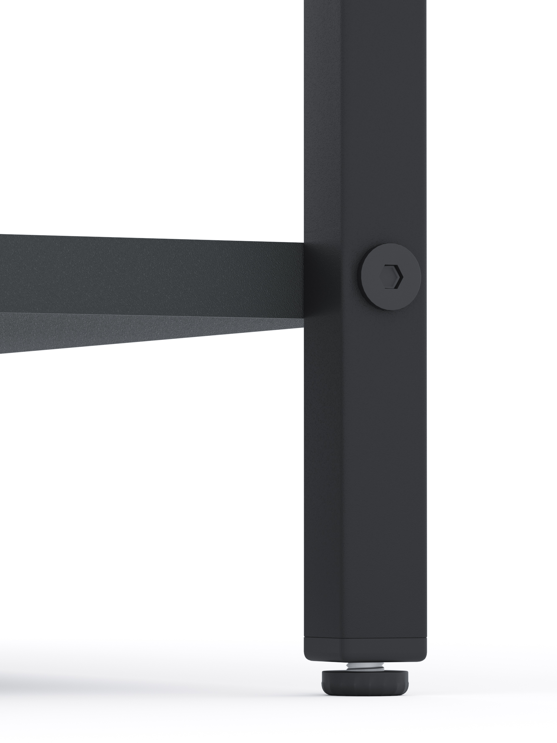 4. Конструкція має цільні стійки, а полиці надійно кріпляться болтами.