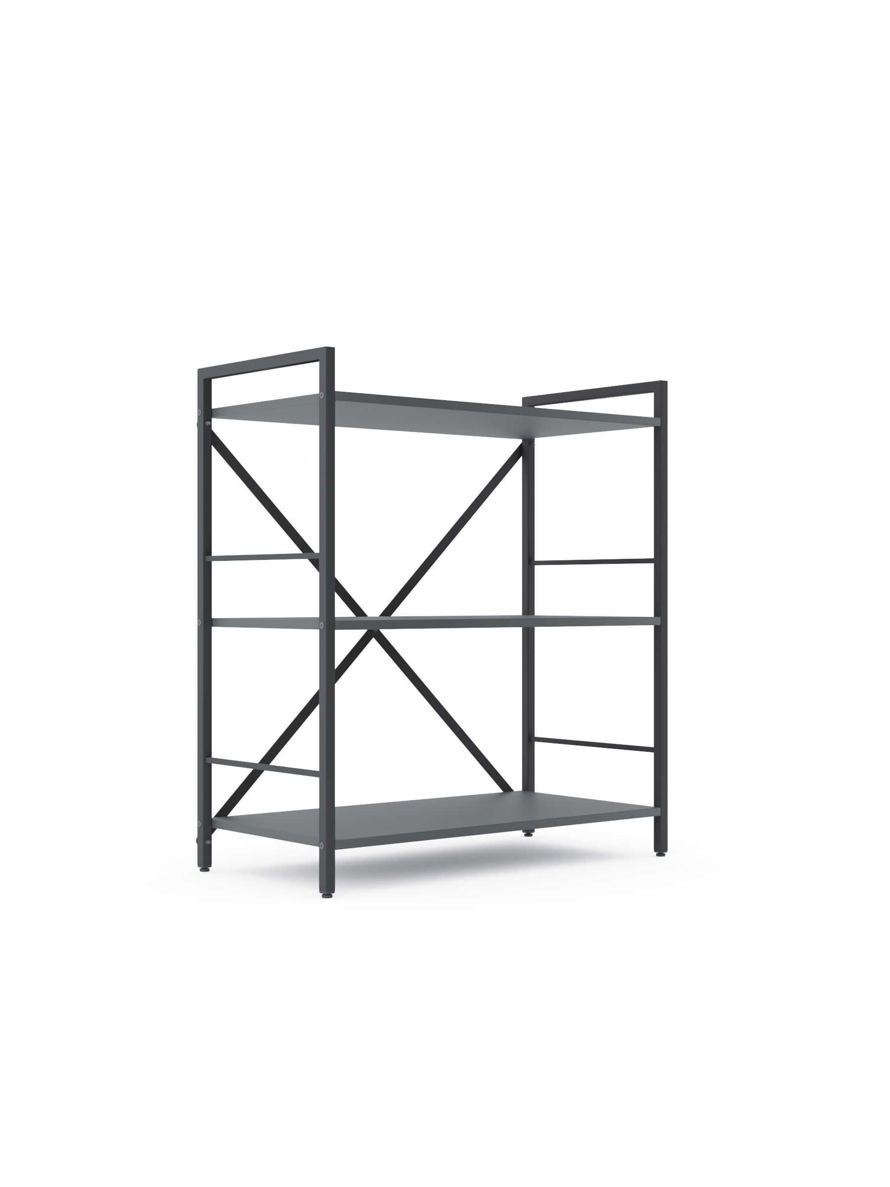 Металевий стелаж 90×60×24 антрацит-антрацит, 3 полиці ЛДСП, Лофт