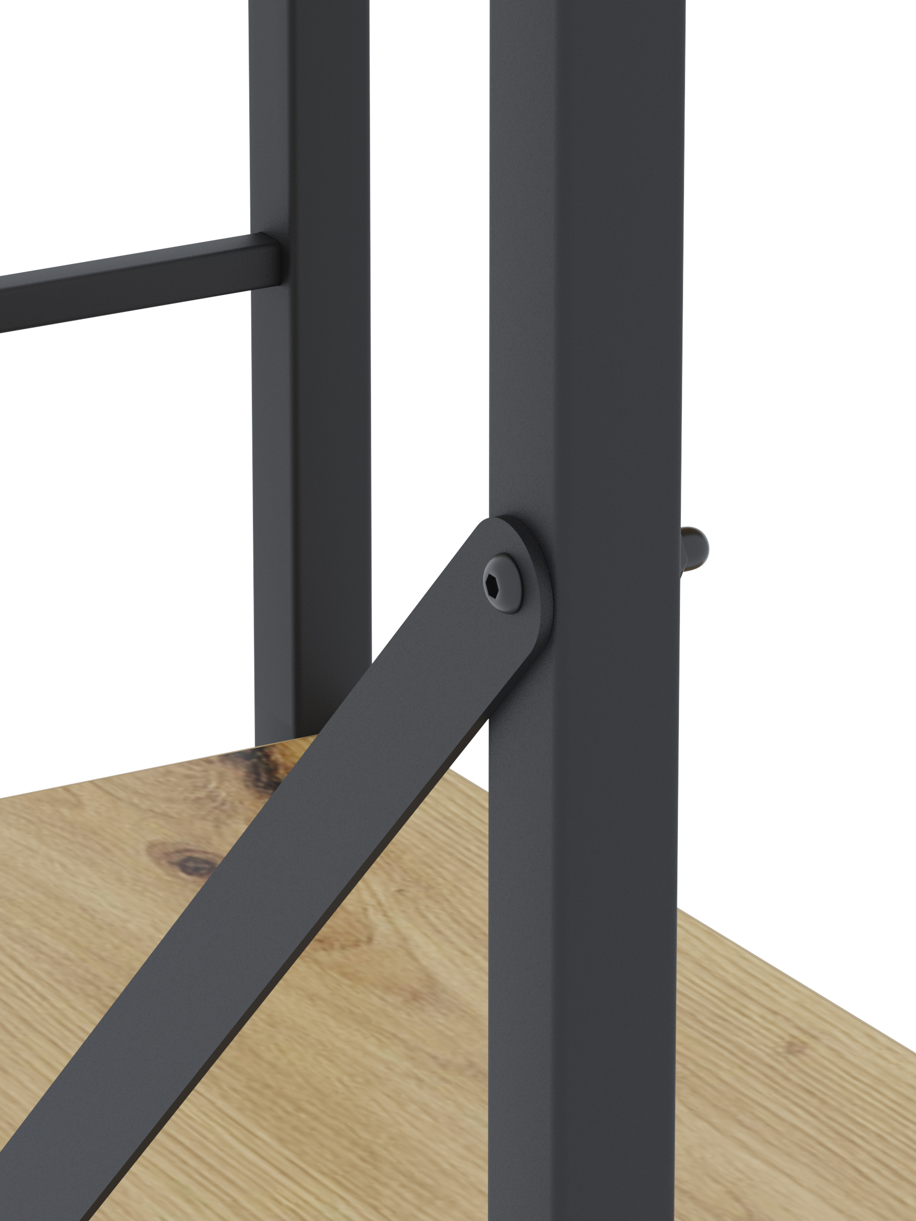 4. Конструкція має цільні стійки, а полиці надійно кріпляться болтами.