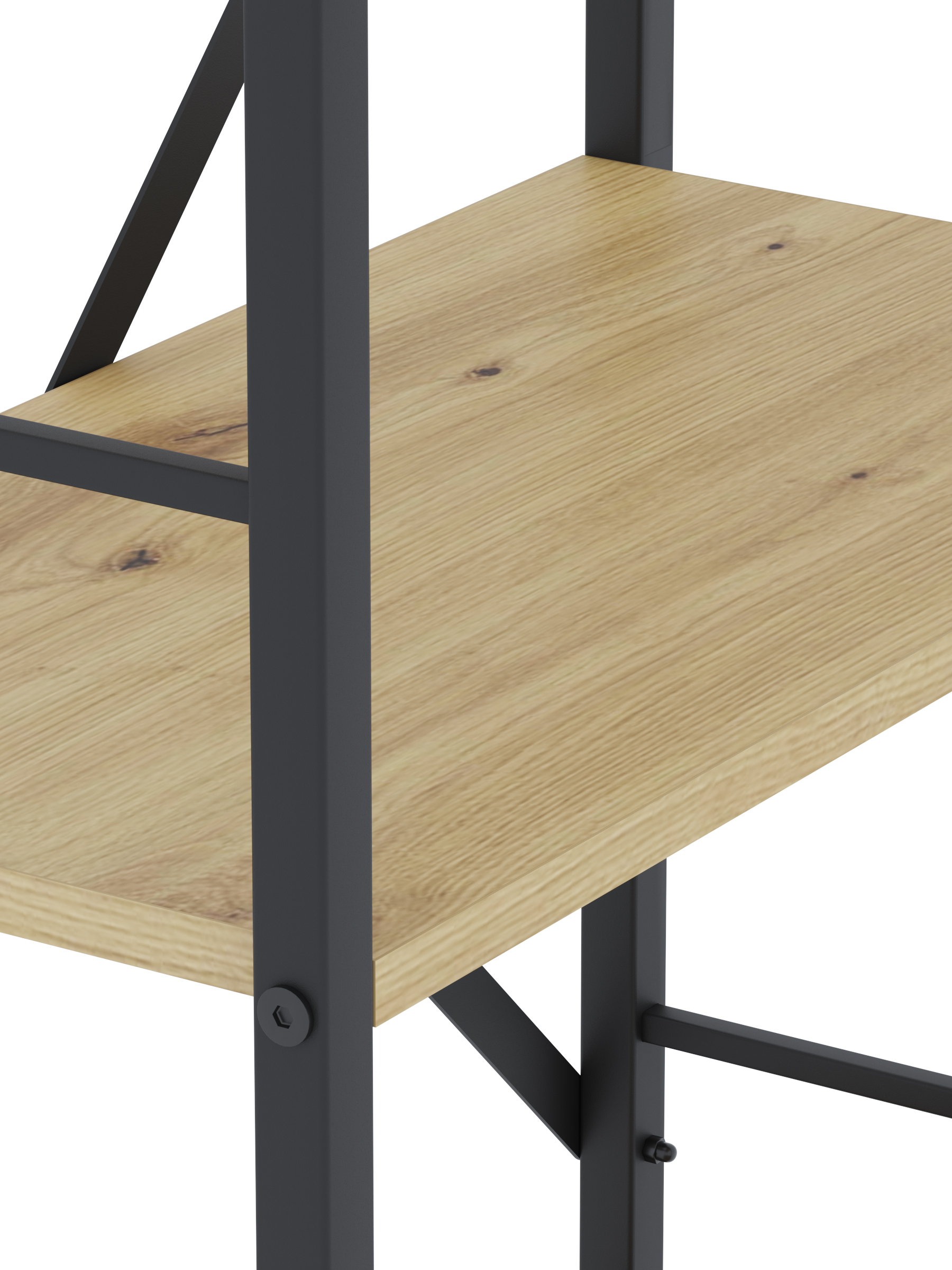 Модель доступна у двох варіантах каркаса: Білий або Антрацит. Полиці можна вибрати у відтінках Антрацит, Білий Сніг та Дуб Артизан.