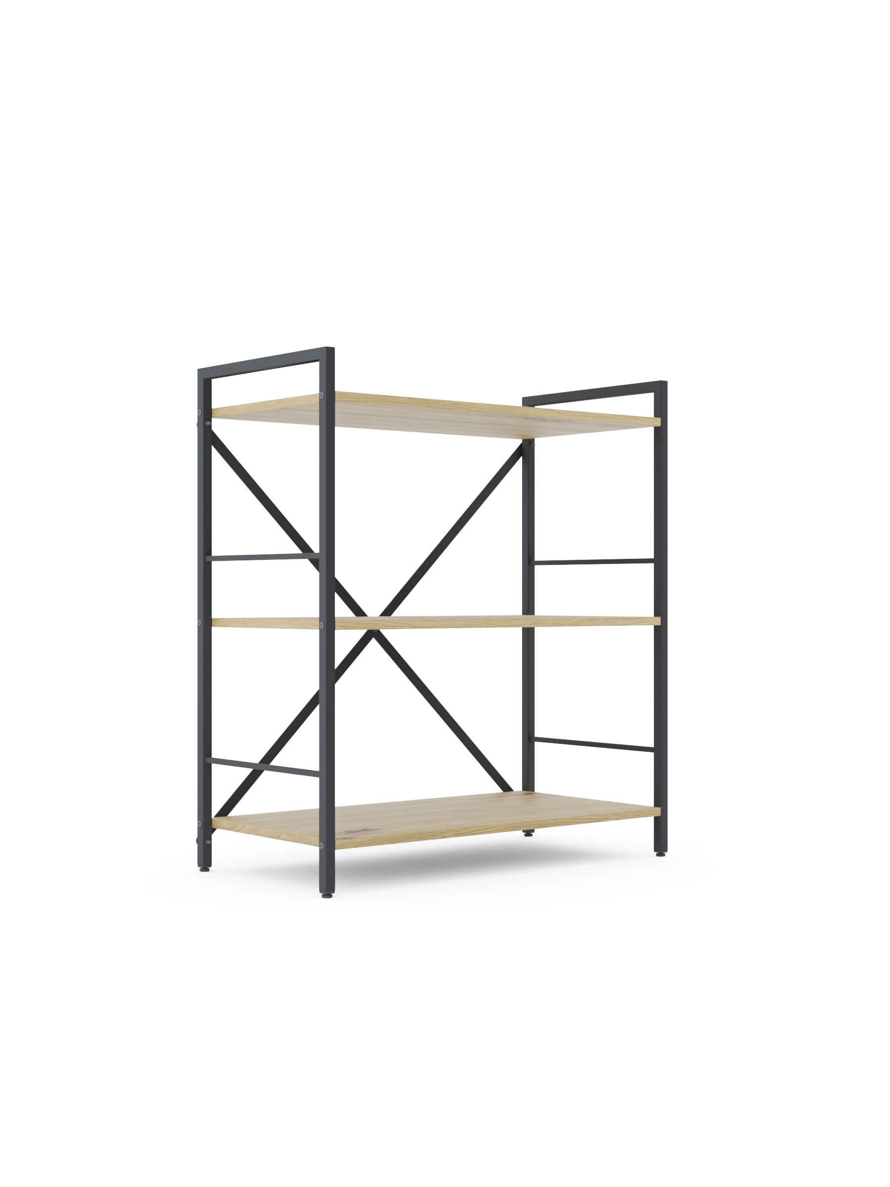 Металевий стелаж 90×60×24 антрацит-дуб артизан, 3 полиці ЛДСП, Лофт