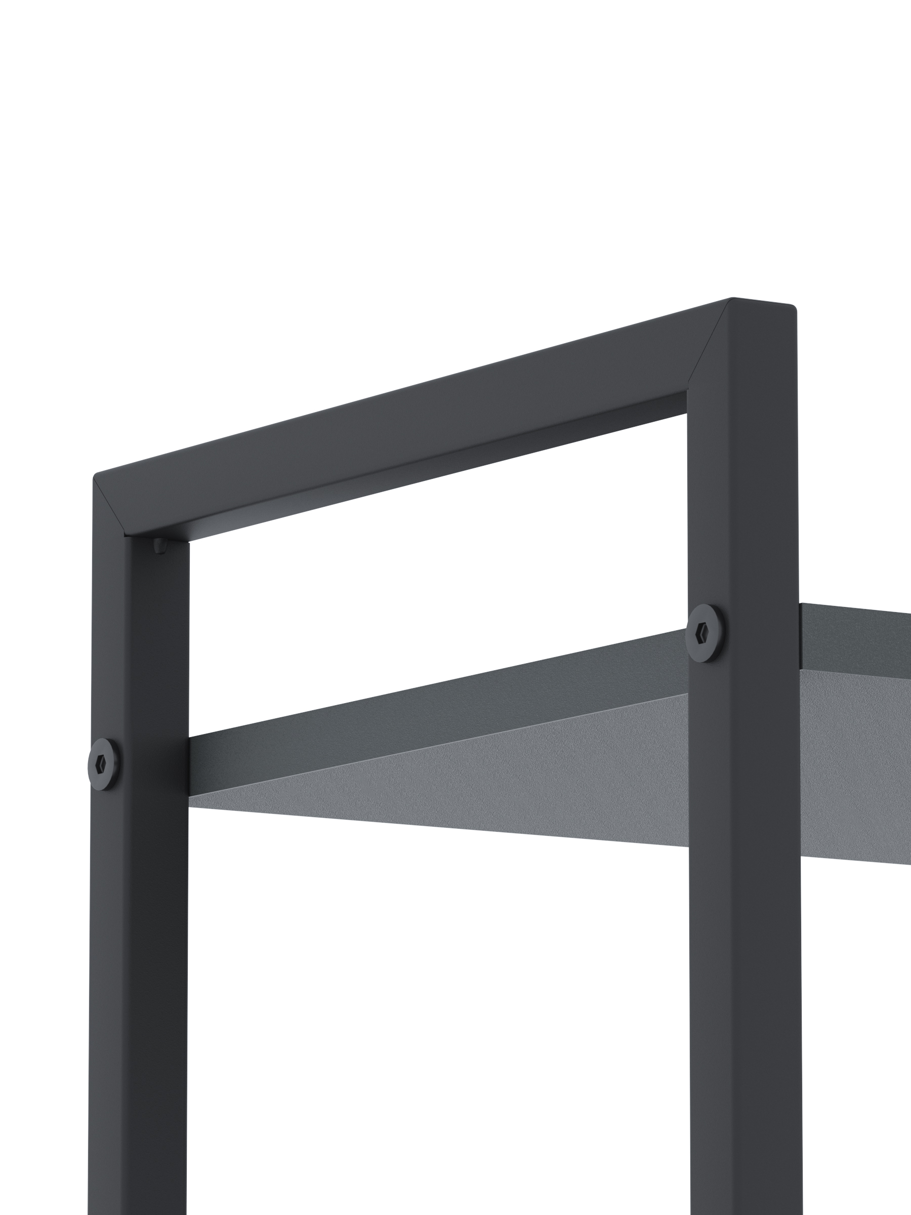 4. Конструкція має цільні стійки, а полиці надійно кріпляться болтами.