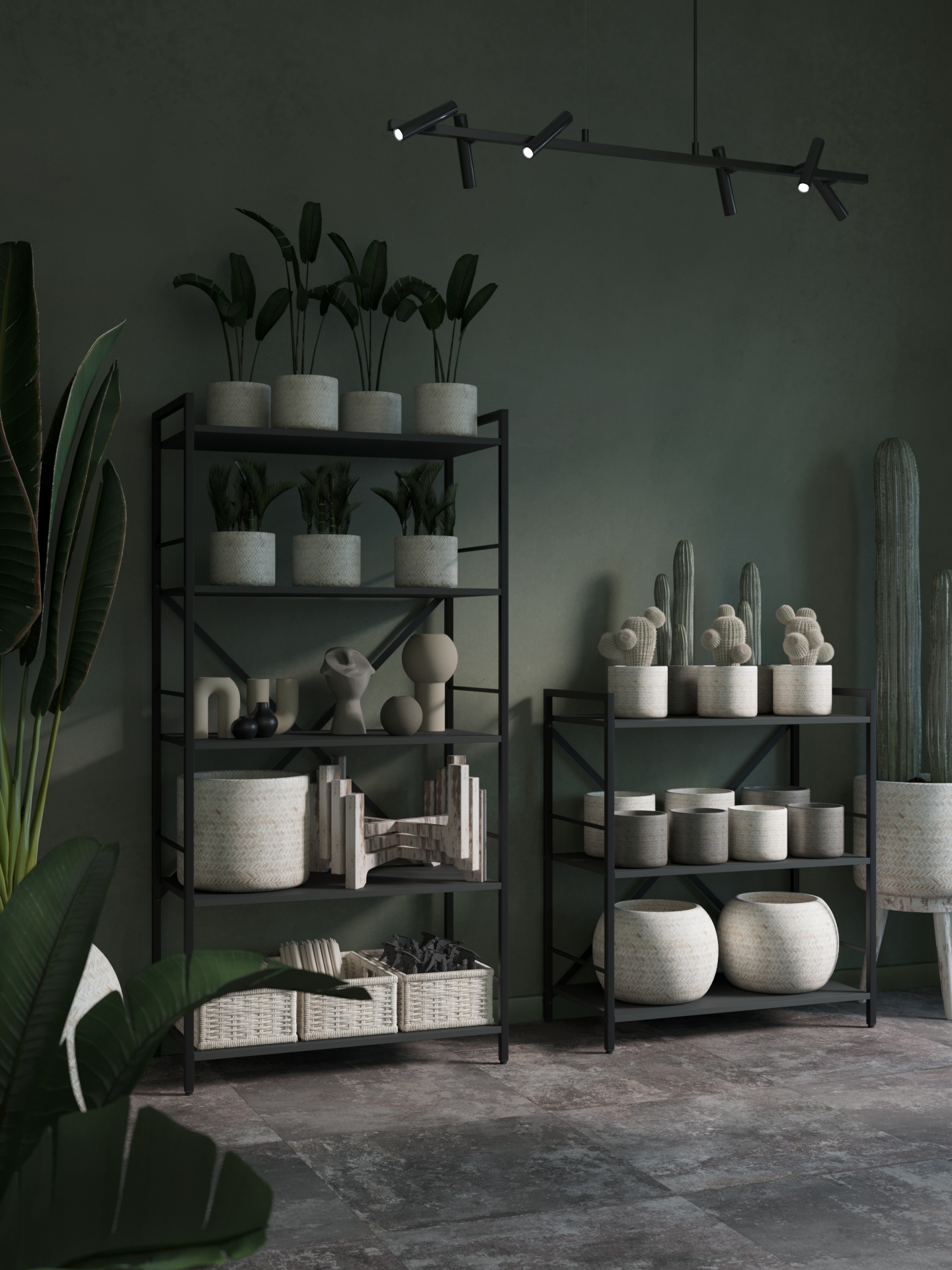 Модель доступна у двох варіантах каркаса: Білий або Антрацит. Полиці можна вибрати у відтінках Антрацит, Білий Сніг та Дуб Артизан.