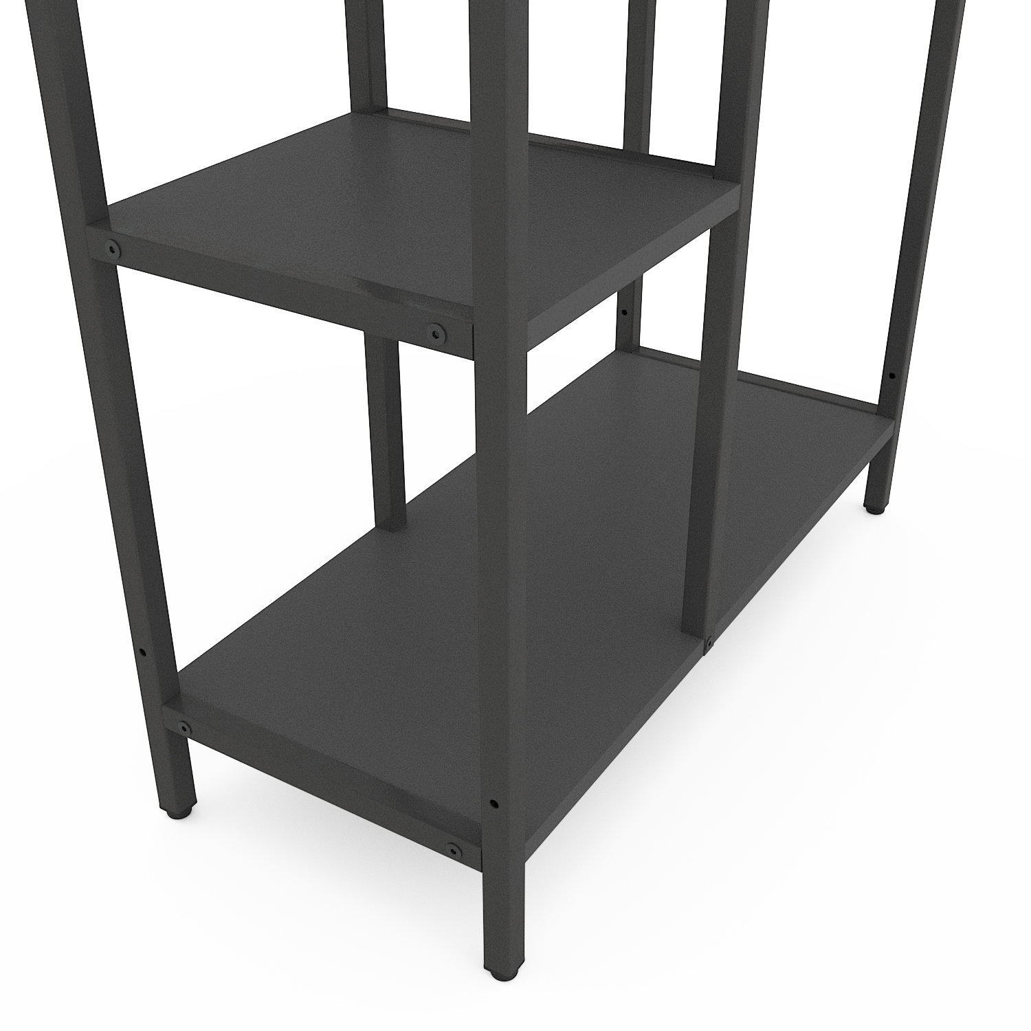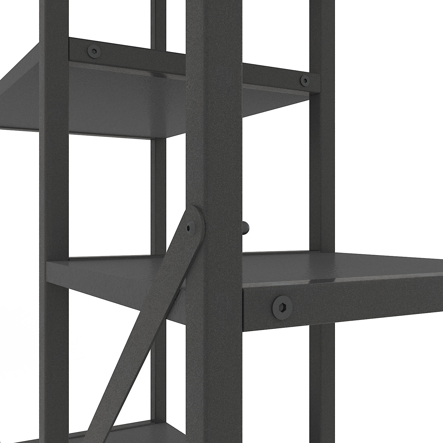 4. Конструкція має цільні стійки, а полиці надійно кріпляться болтами.
