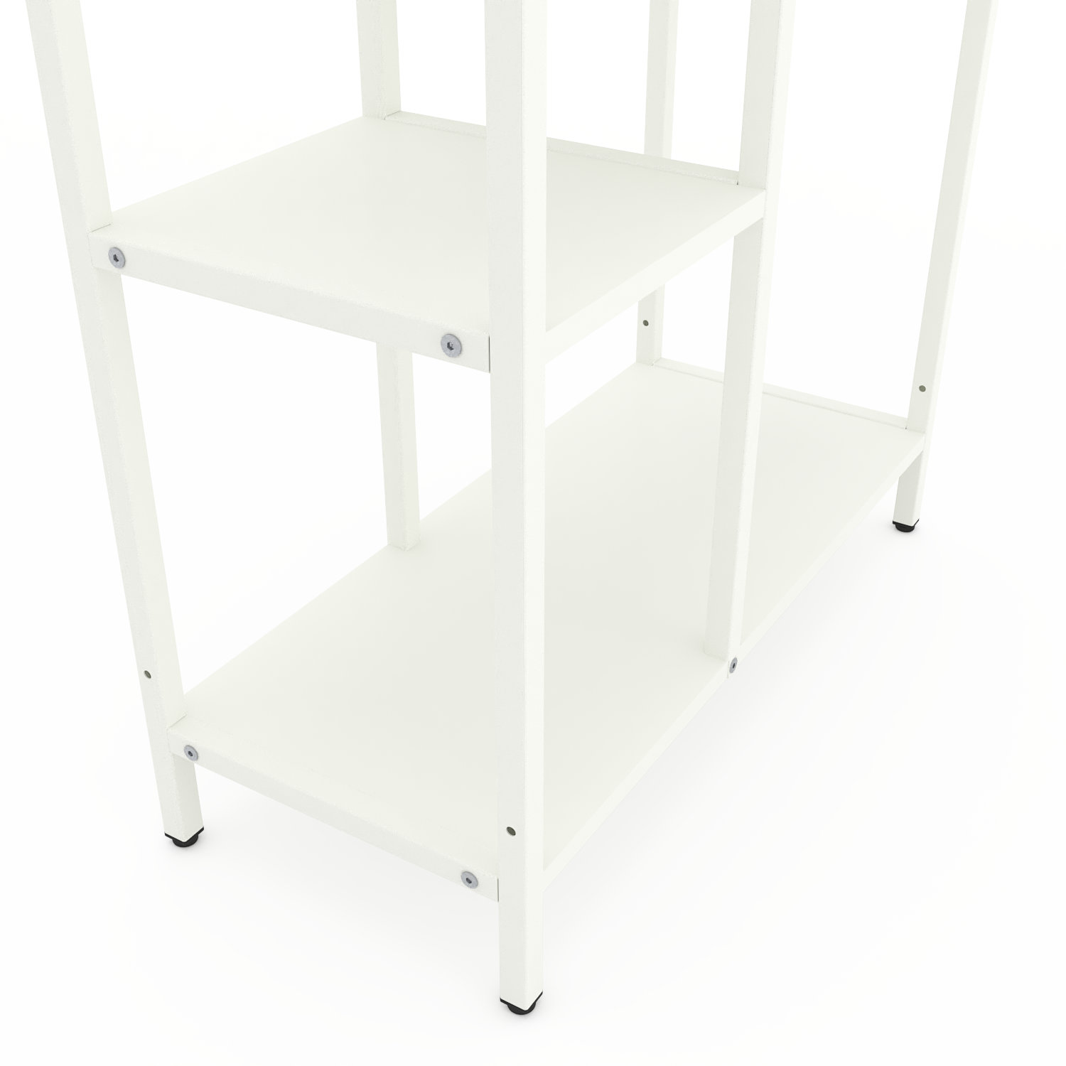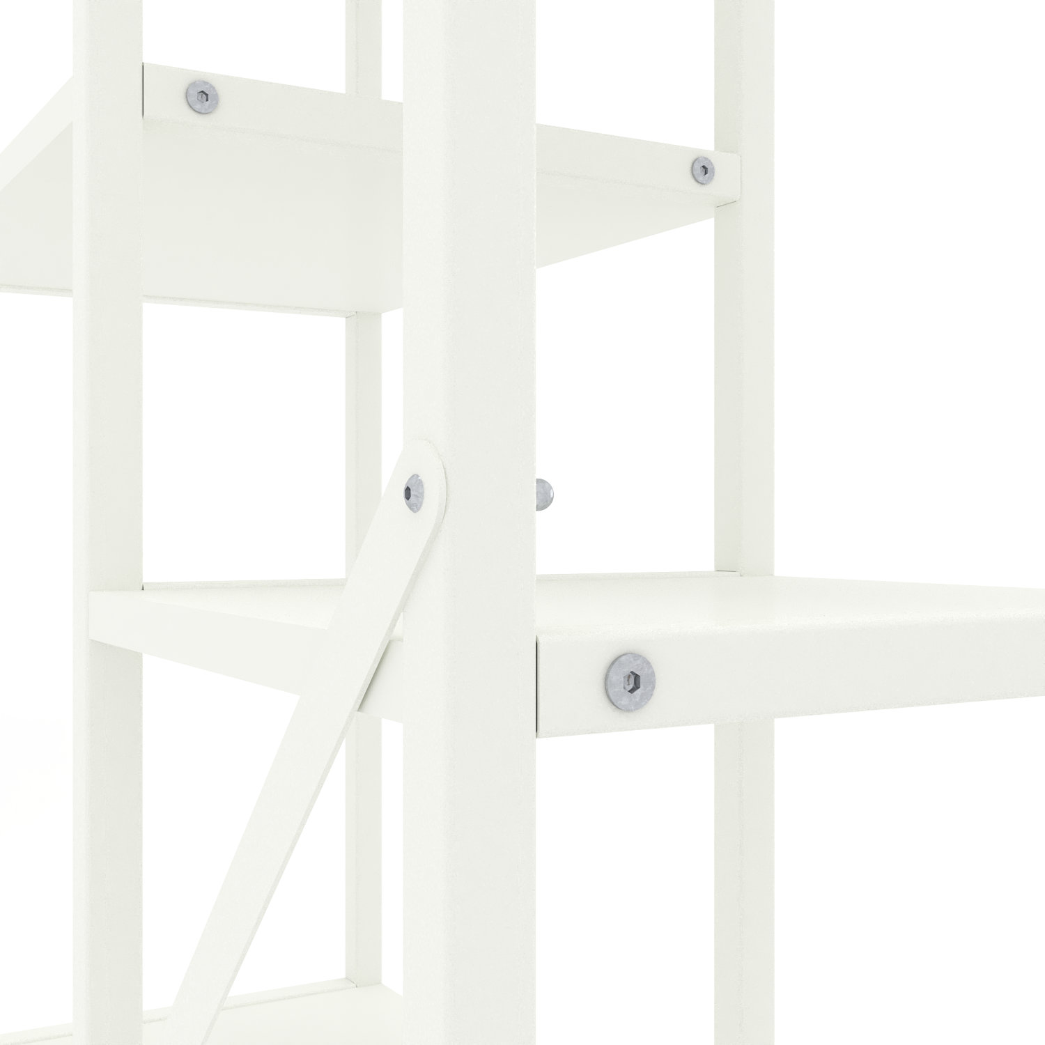 4. Конструкція має цільні стійки, а полиці надійно кріпляться болтами.