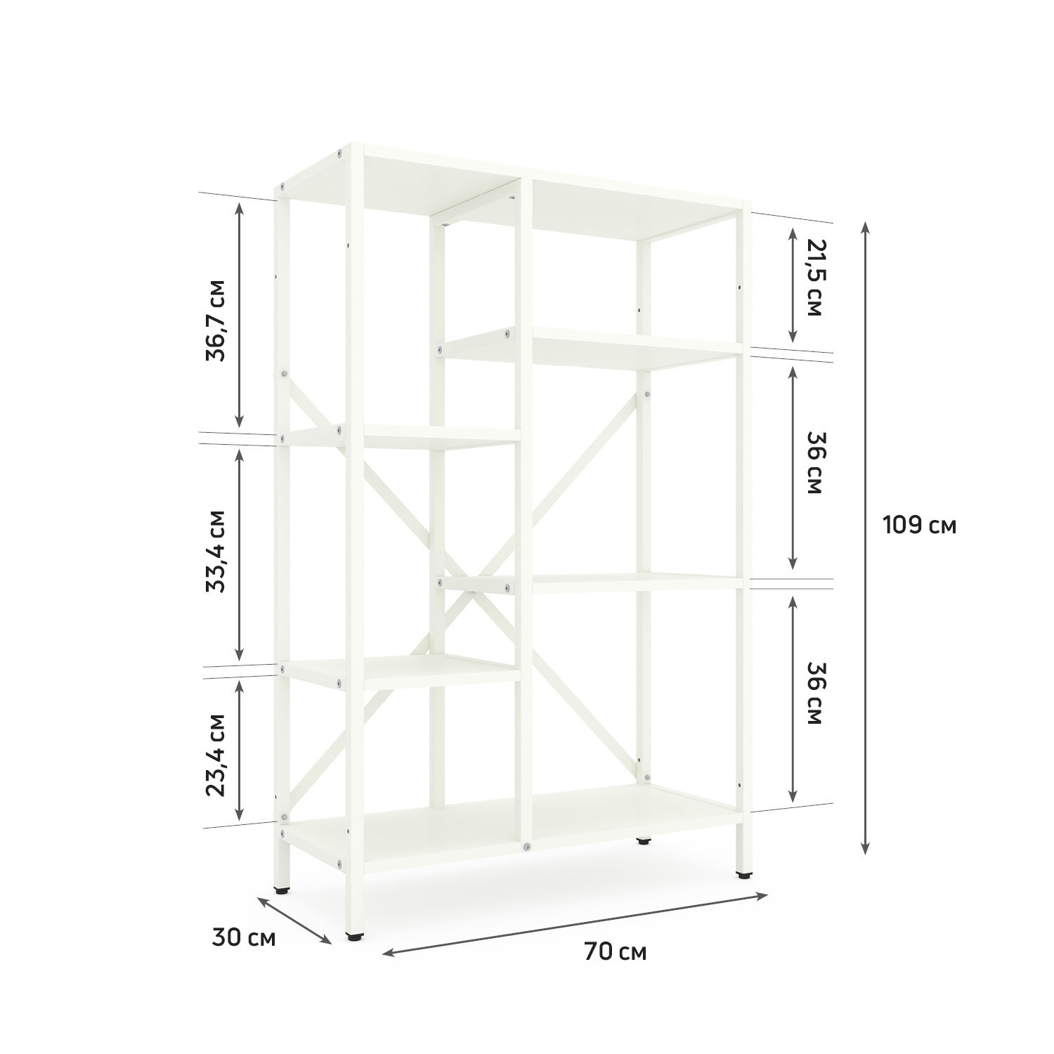 Стелаж Лофт Каскад 1090х700х300 Меткас, 35 кг/полицю, 5 полиць, ЛДСП, білий-білий сніг