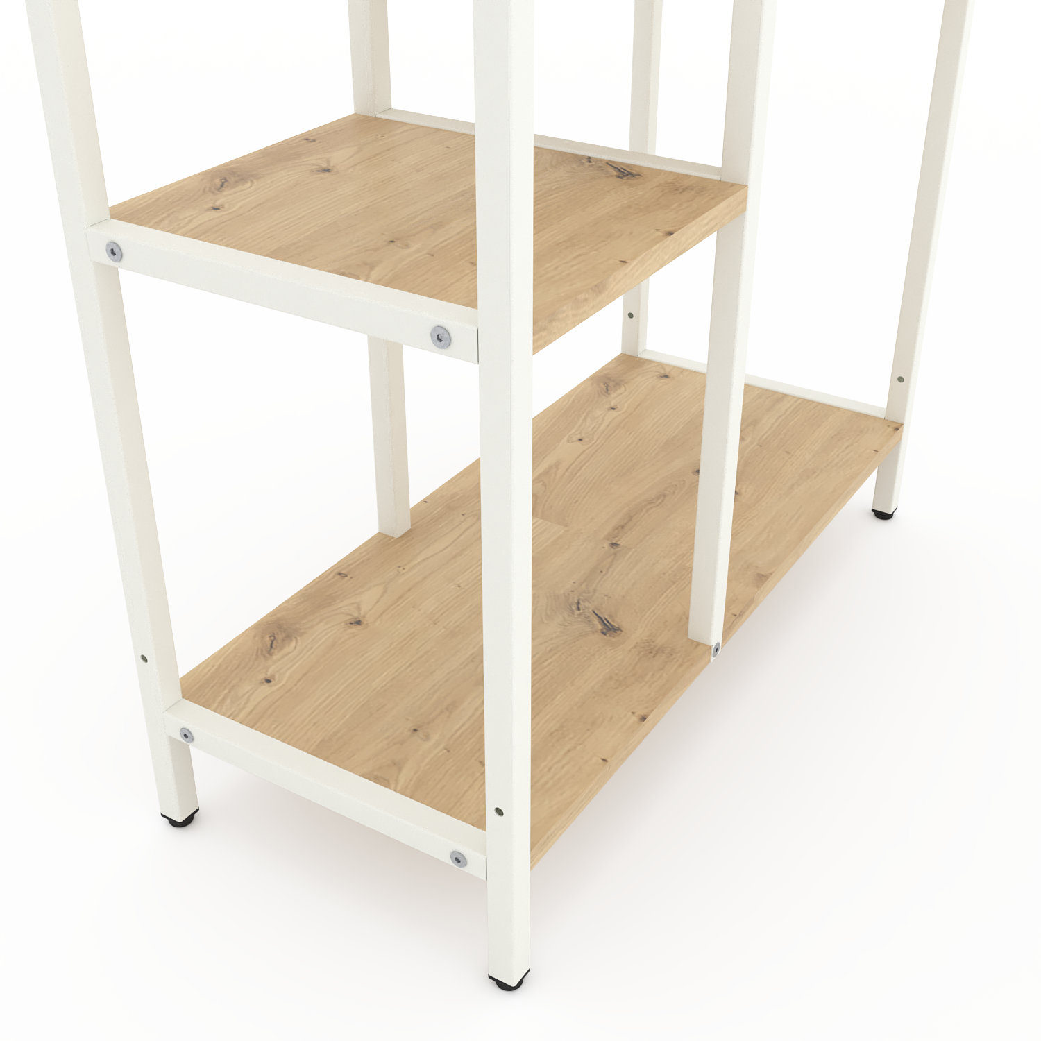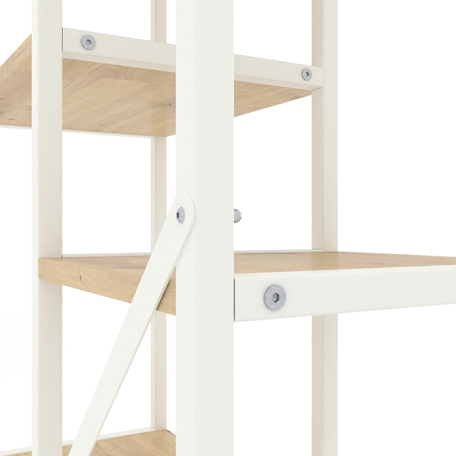 Модель доступна у двох варіантах каркаса: Білий або Антрацит. Полиці можна вибрати у відтінках, які часто застосовуються як базові в лофт-дизайні.