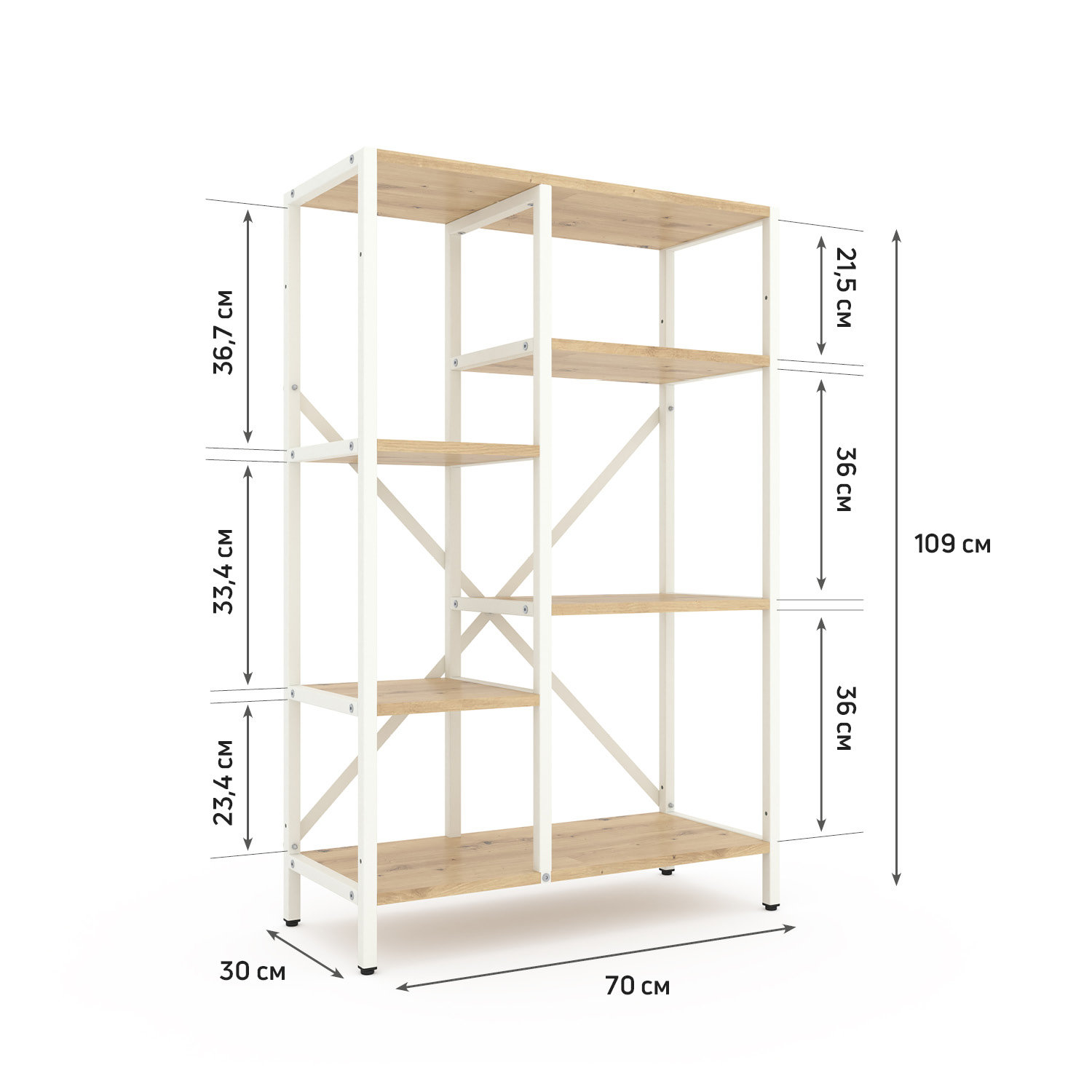 Стелаж Лофт Каскад 1090х700х300 Меткас, 35 кг/полицю, 5 полиць, ЛДСП, білий-дуб артизан