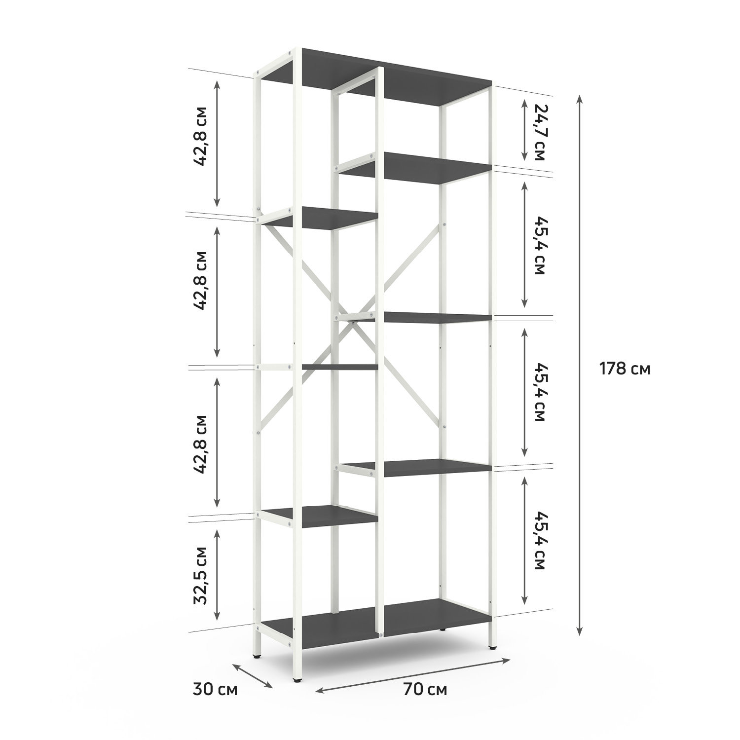 Стелаж Лофт Каскад 1780х700х300 Меткас, 35 кг/полицю, 7 полиць, ЛДСП, білий-антрацит