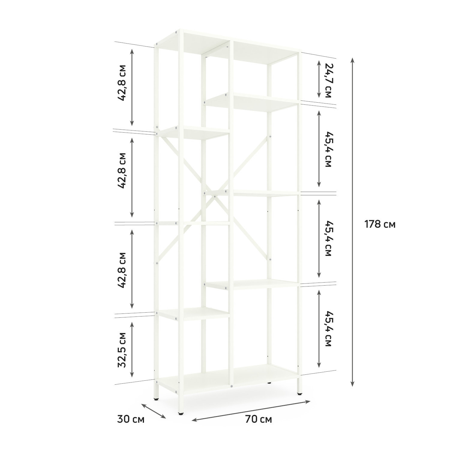 Стелаж Лофт Каскад 1780х700х300 Меткас, 35 кг/полицю, 7 полиць, ЛДСП, білий-білий сніг