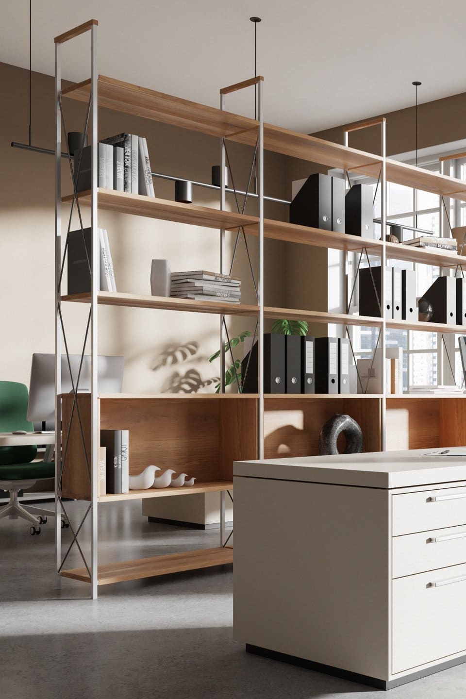 Прагнення чітко розділити кімнату часто призводить до вибору надто громіздких елементів. У невеликих приміщеннях це створює ефект «стіни» й візуально зменшує площу. Металеві стелажі з відкритою конструкцією або тонким каркасом працюють краще: вони зберігають відчуття простору і не перевантажують інтер’єр.