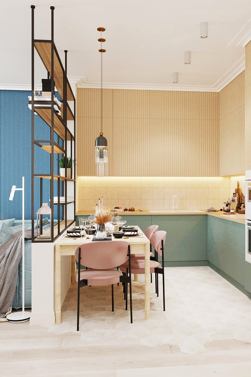 Сучасна перегородка для зонування не перекриває світло, а навпаки робить простір глибшим і цікавішим візуально.